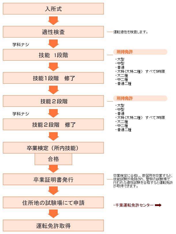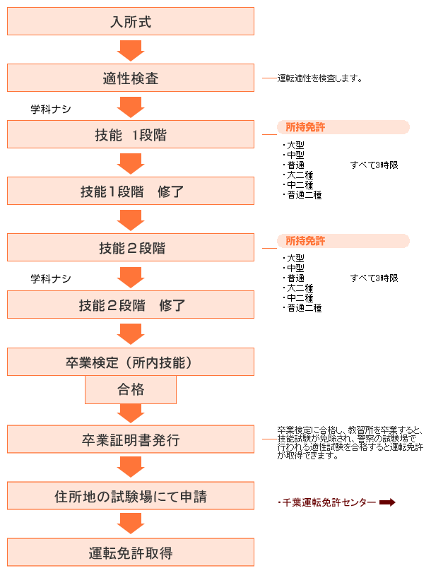 けん引自動車 入所から免許取得までの流れ